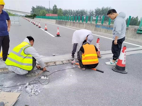 将破损的混凝土凿除清理、校正变形钢筋、焊接钢筋与伸缩缝钢板、使用早强型混凝土浇筑伸缩缝并适时洒水养护,待混凝土强度形成后及时恢复通行。经过一天积极有效工作,此次桥梁伸缩缝病害维修完成,有效提升桥梁行车舒适度和通行能力,消除安全隐患。