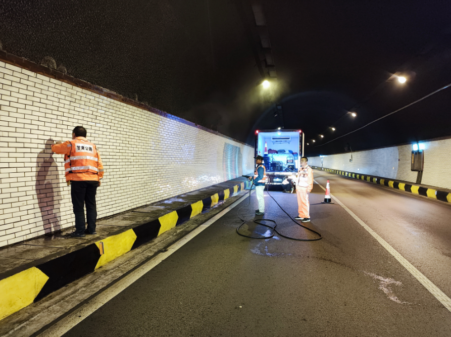 经过养护人员全力清洗,该段管养公路隧道变得干净整洁,整体环境显著提高,消除了隧道内的安全隐患。(甘肃静宁公路段:张庆花)