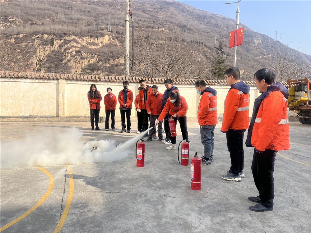 10时30分,演练正式开始。此次消防演练模拟因发生自然灾害导致机关办公楼三楼设备材料部发生电路起火,大火迅速蔓延,浓烟滚滚,严重威胁人员生命。值班人员发现火情后第一时间上报演练总指挥,总指挥接到险情报告后迅速启动消防应急预案。确认火情后,后勤保障组及时拨打火警电话,准确告知火灾发生地点、火势大小、是否有人员被困等情况,并提供畅通的联系方式;楼层安全员按照消防应急预案分组迅速前往各楼层开展疏导工作,引导工作人员俯身低头、用毛巾捂住口鼻,紧张有序地沿着安全通道逃离;完成疏散后,再次检查各办公室、卫生间等场所,确定无人员遗漏后及时向总指挥作了汇报。随后,消防救援大队消防车辆抵达火警现场,对现场进行了排烟处理,模拟了灭火救援全过程。实景演练结束,在机关院内为大家进行了干粉式灭火器和消防栓等器材使用方法的讲解培训及演示。