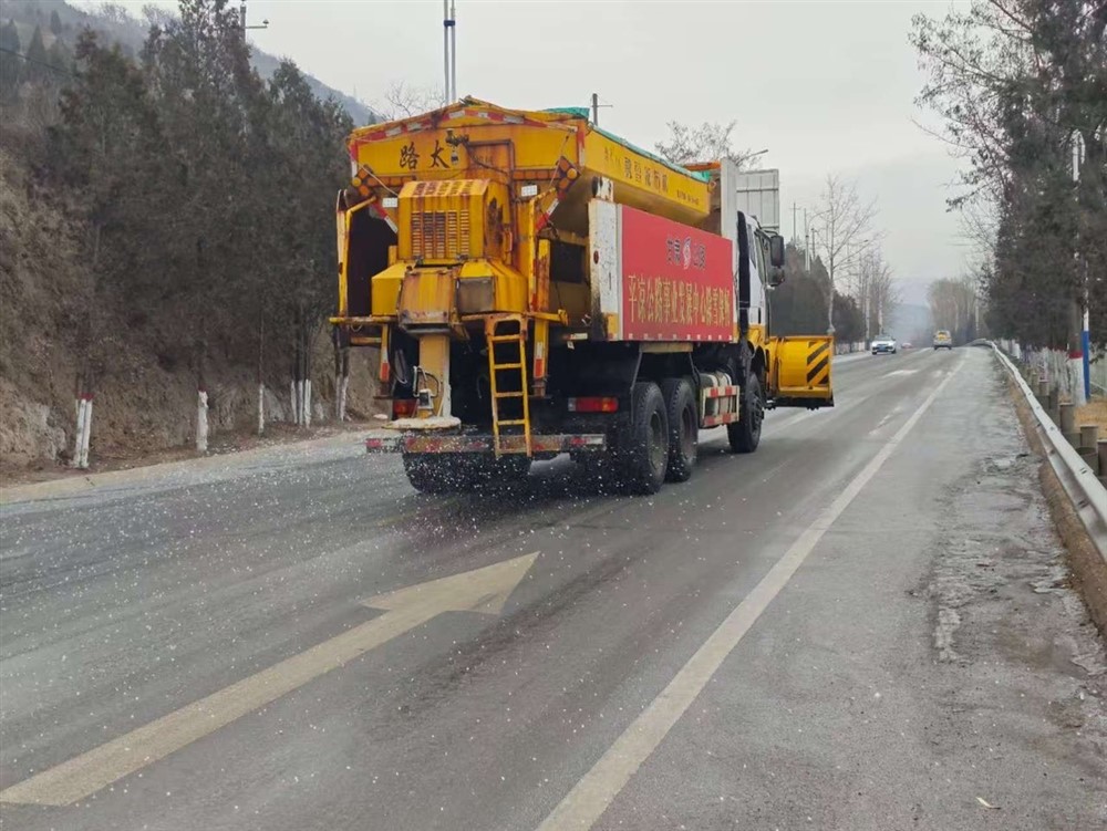 二是撒盐除冰,保障畅通。该段针对结冰路段,静宁公路段组织养护人员第一时间撒布融雪剂,并利用机械设备进行除冰作业,确保道路安全畅通。