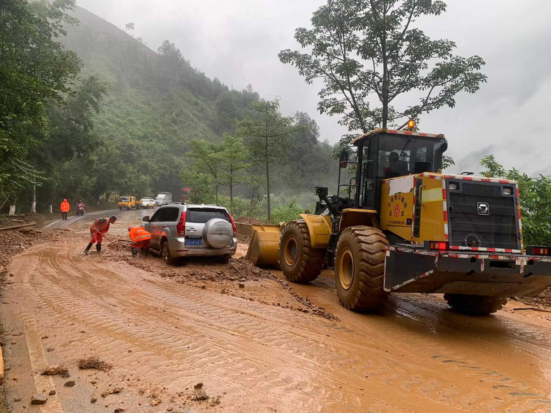 此次抢险保通,绿春公路分局共投入挖掘机1台班,装载机5台班、保通车辆6辆、应急保通人员16人次,清除泥石流约1800立方米。