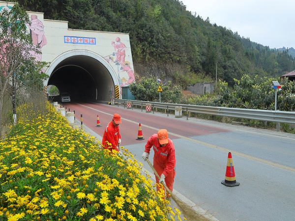 为进一步提升出行体验,2022年,屏边公路分局在管养路段建设了绿美公路63公里。此后,持续以绿美公路为样板,通过养护项目督查、主题党日活动、路地共建等方式,盯实日常养护生态化、路域环境整治常态化工作,推进辖区全域生态养护,打造集交通、观光、体验于一体的综合性服务公路,逐步探索交通功能旅游化,推进公路交通与旅游融合发展。舍古冲隧道便是其中的一副画卷。