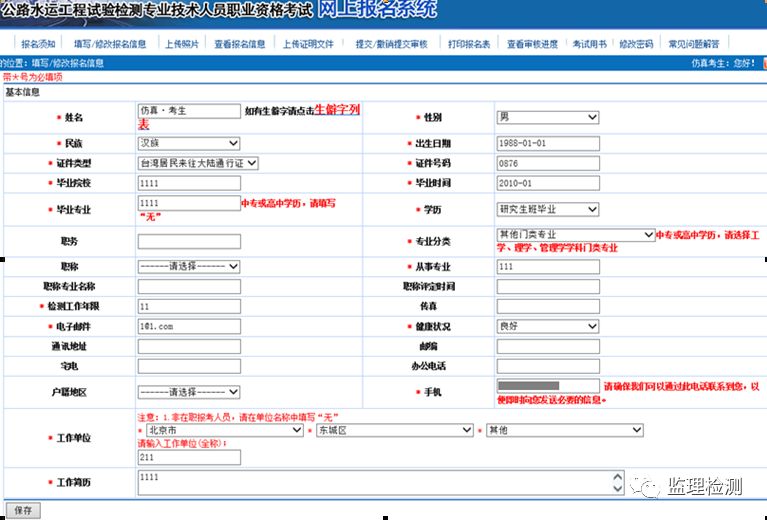 本系统用于公路水运工程试验检测专业技术人员职业资格考试网上报名使用,考生需要完成注册、填写\修改报名信息、上传照片、上传证明文件、提交报名信息、打印报名表等操作。将报名信息和其他报名要求材料提交到报考省份进行报名确认。并在准考证打印开放时间内打印个人考试准考证。
