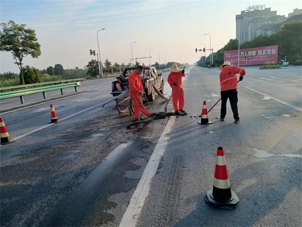 为消除道路安全隐患,保障道路的安全畅通,阜南公路分局在加大辖区路面日常排查力度的同时,及时对路面坑槽进行了修补。