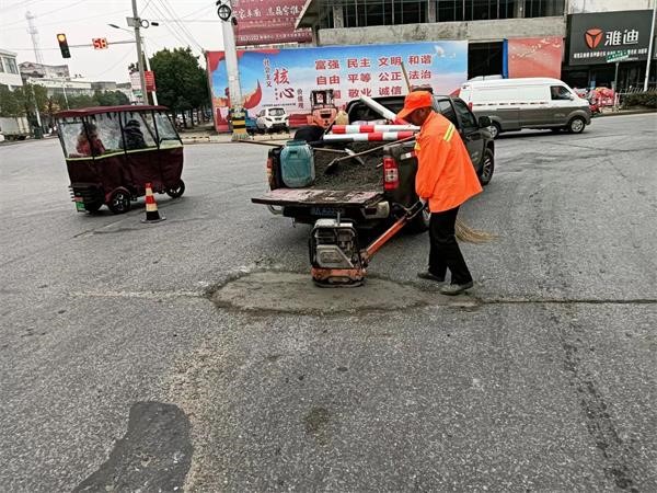 近日,阜南县公路管理服务中心养护人员在巡查时发现,阜南境内318省道公桥大街红绿灯路口处路面出现多处坑槽病害,随着冬季雨雪冰冻天气的增多,如不及时消除路面坑槽病害,对过往行人、车辆产生较大安全隐患,影响道路通行能力。为消除道路安全隐患,保障道路的安全畅通,中心在加大辖区路面日常排查力度的同时,及时对路面坑槽进行了修补。