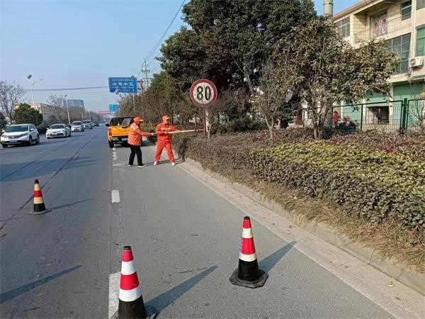 四是强化保养,改善路容路貌。小修施工队组织养护工人对桥梁护栏、标识标牌进行清洗,对路遮挡标识标牌的树木进行修剪。提升保洁标准,督促国省干线公路沿线乡镇推行“洒水降尘、机械清扫、人工保洁”三位一体公路保洁模式,全天候进行机械化清扫、洒水降尘,确保公路环境卫生,提升公路“颜值”,为群众营造整洁靓丽、有序的节日公路交通环境。