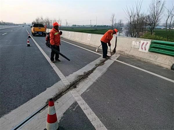 为保障桥梁安全运行,3月3日起,中心组织养护养护人员对辖区大中桥梁伸缩缝进行清理,清理作业中,养护人员不断优化交通组织方案,保证养护人员安全,减少因施工给过往交通带来的影响。由于伸缩缝通常较为狭窄,无法采用大型机械作业,养护人员用扫帚、木棍等工具进行人工掏挖。养护人员严格遵循作业流程,先将伸缩缝中的泥沙打松、翻出,再一点点清理干净。