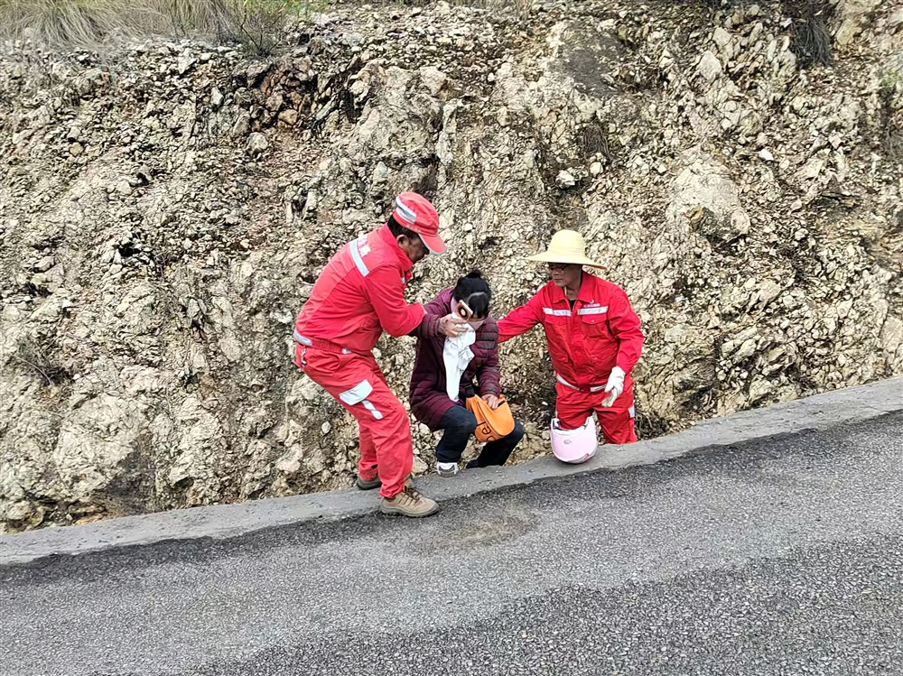 - 12-11老人骑车滑摔入沟,开远公路分局及时施救