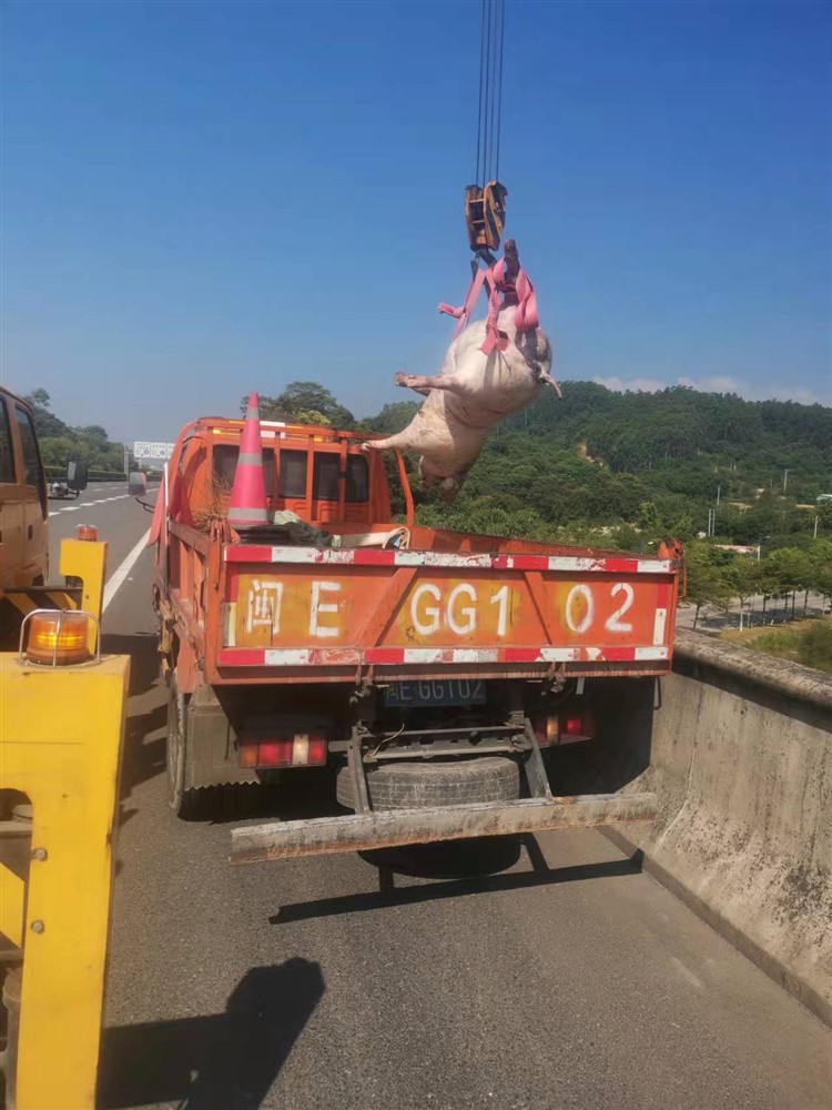 - 10-19死猪高速路上乱丢弃 养护站及时处置