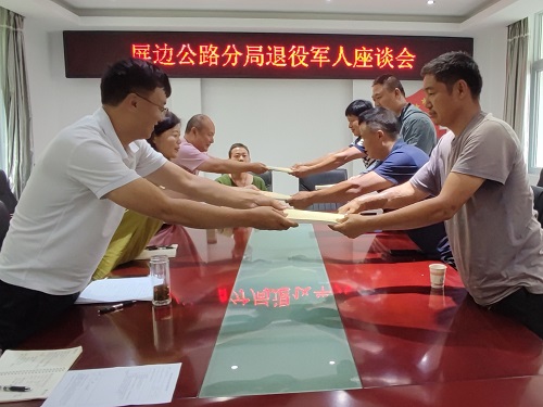 最后,屏边公路分局还向每一位退役军人发放学习书籍。大家纷纷表示,在今后的工作中要充分发挥退役军人先锋模范带头作用,时刻保持军人的优良传统和过硬作风,“退伍不褪色”的精神品质,继续发扬顽强拼搏的战斗作风,为屏边公路分局发展贡献自己的力量。(云南屏边公路分局:李桂芳)