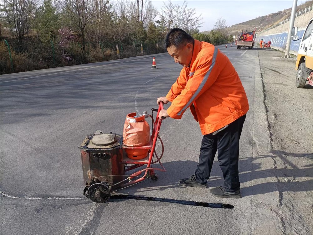 甘肃:静宁公路段不负春光 灌缝“疗伤” 正当时