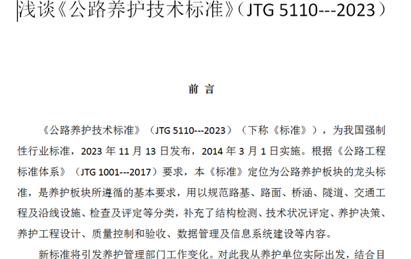 - 01-03浅谈《公路养护技术标准》(JTG 5110---2023)